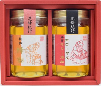 「純粋はちみつ」と「ローヤルゼリー添加はちみつ」の組合せです。